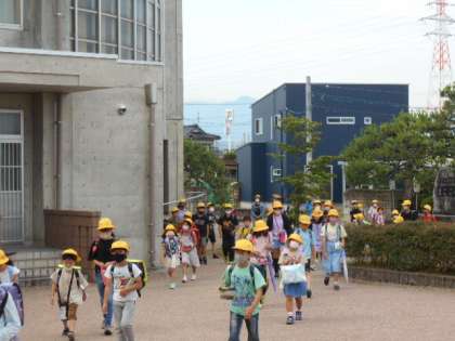 うっすらと雲の間から青空が見え隠れする朝を迎えました。子供たちはいつものように元気に登校しています。