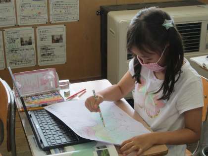 富山市の土地の様子を航空写真を見ながら、白地図に書き込みました。富山駅の周りは家や会社が多いことに気付いていました。