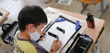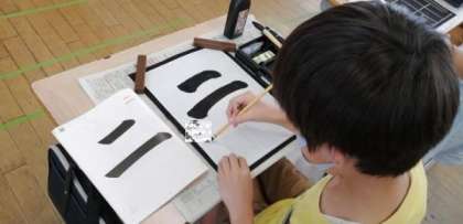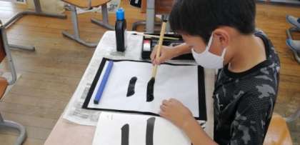 毛筆の学習で、「二」を清書しました。小筆の使い方も学習し、氏名の練習も行いました。筆遣いもだんだん上達し、今までで最高の作品に仕上がりました。