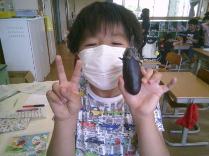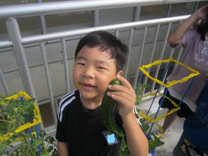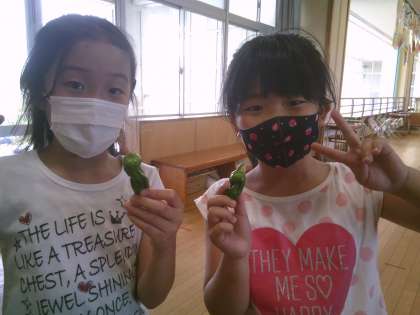 一足先に収穫しました。大きな実がなってとてもうれしそうな子供たちです。