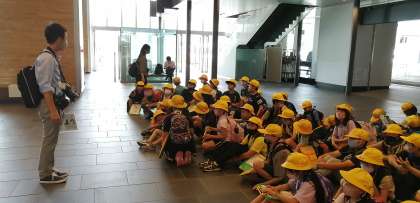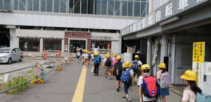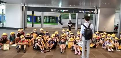 社会科の学習で、富山駅周辺を回ります。富山駅に到着しました。初めての子供たちもいて、大喜びです。