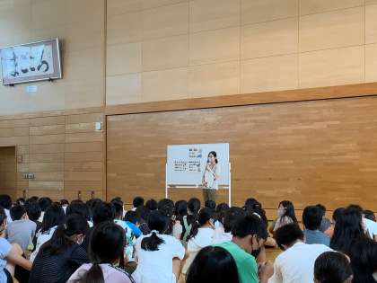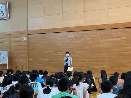 養護教諭の先生や校長先生からも話を聴きました。健康な体で、安全にプールの学習に取り組みましょう。自分の「try(目標)」を決め、実現に向けて「go(前進)」しましょう。