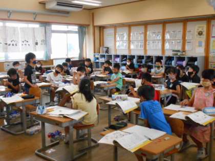 予想を立てて話し合っています。 聴くときは、話す人の方に体を向けます。