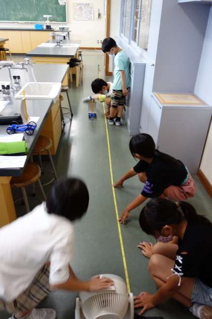 「風の強さ」、「風受けの大きさ」という条件を変えながら、実験をしています。