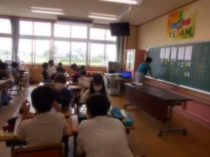 分数の倍について考えたり、クロムブックを使って自分の考えを伝え合ったりしました。