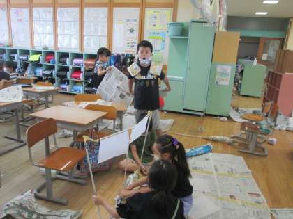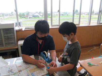 社会科のテストや図画工作科の作品づくりの様子です。わからないことがあれば、先生に聞きに行き、作業を進めています。