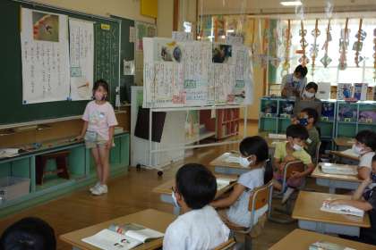 1組では、たくさんの先生方が授業の様子を見に来ていたので、はりきって学習していました。「くちばし」の形や使い方について学びました。