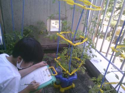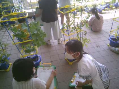 今日も長さを測ったり、さわったりしながら野菜を観察しました。「もうすぐ収穫できそう!」「実が赤くなった!」と嬉しそうな声も聞こえてきました。