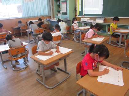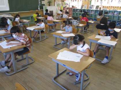 国語の学習のたしかめを行いました。文章や問題をよく読んで答えを書いています。