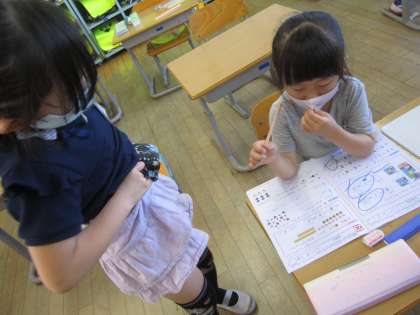 友達に考え方を教えてもらったり、友達に解き方をわかりやすく説明したりと、学び合う姿が見られました。
