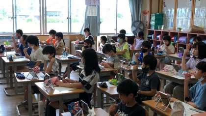 歯周病菌が実際に動いている動画を見たり、養護教諭や栄養教諭の先生から話を聴いたりして、歯周病から歯を守ることの大切さについて考えました。歯の磨き方も確認しました。