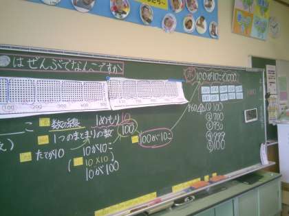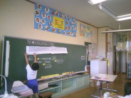 ○の数がいくつあるか、考えを伝え合いました。みんなで話し合うといろいろなことが解決していきます!暑い中ですが、集中して取り組んでいました。