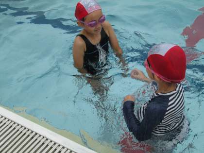 顔に水をつけたり潜ってみたりして、水になれるところから学習しました。