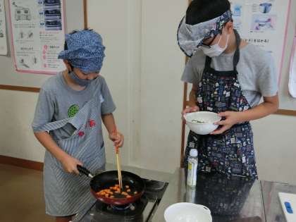 6年生は、今年度初めての調理実習でした。慎重に包丁を使っている様子や野菜炒めをしている様子に、安心して見ていることができました。