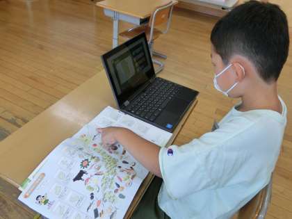 4年生は、タブレットを使って都道府県名を覚えるのが楽しくて仕方がない様子です。県の形や特産品まで覚えて始めています。