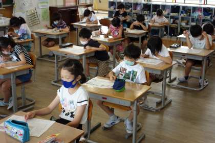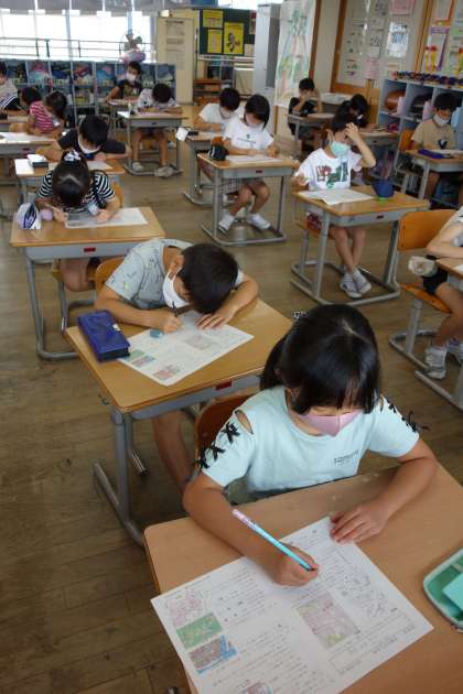 テストの様子です。学習の成果を発揮しようと、集中してがんばっています。