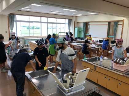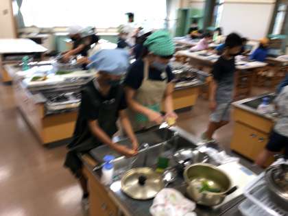 家庭科の調理実習を行いました。青菜とじゃがいもは、水から茹でますか?お湯から茹でますか?その違いを理解しながら調理しました。