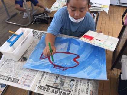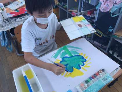 自分の想像するまぼろしの花を水彩やクレヨンを使って描いています。