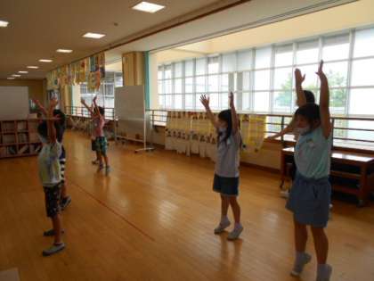 今日はラジオ体操で体をほぐしています。