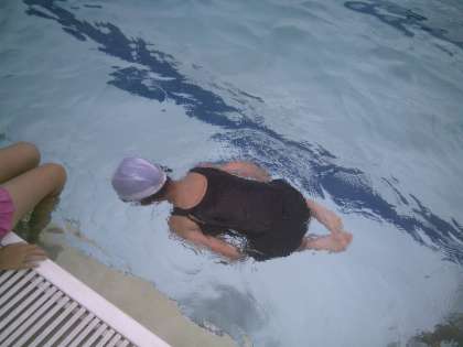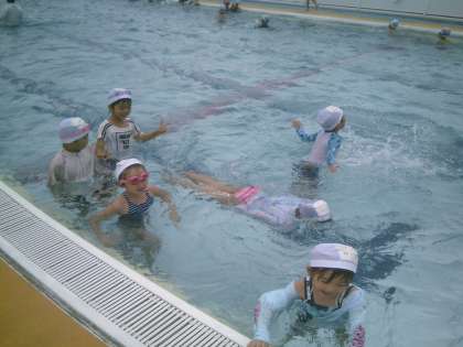 晴れ間をみて、プールに入ることができました。今日は、だるま浮きにも挑戦しました。嬉しそうな笑顔がたくさん見られました。