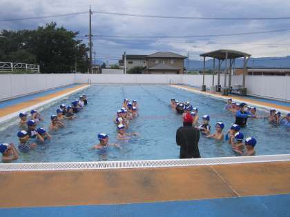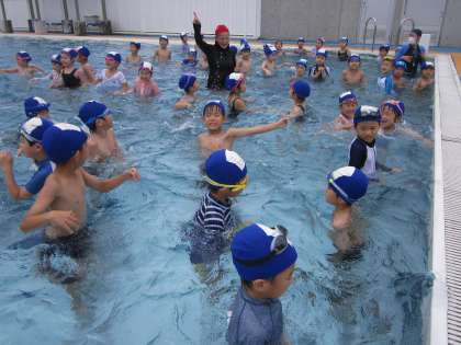 森田コーチに水泳指導をしていただきました。水に慣れるための動きや、水の中での呼吸の仕方を中心に教えていただきました。