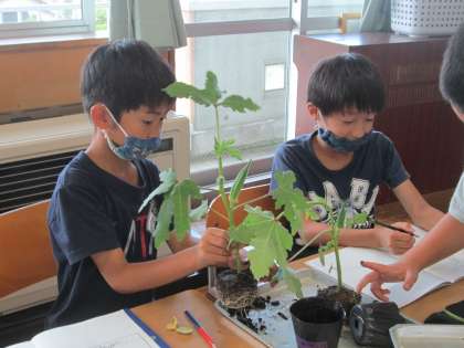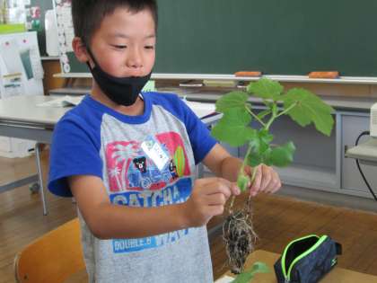 植物のからだのつくりはどうなっているのか観察しました。根が予想以上に育っていてびっくりしていました。