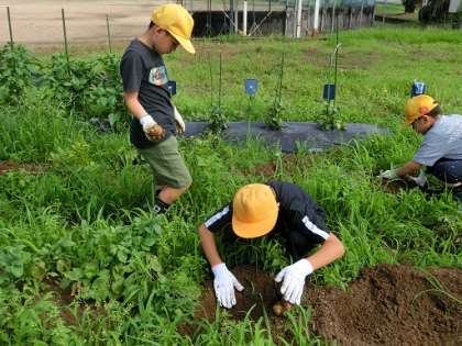 毎日、野菜の健康観察を続けてきた子供たちですが、収穫までたどり着けてとても喜んでいます。ただ、写真の表情には、ちょっと疲れが見えますが・・・