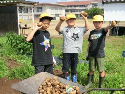 春に畑を作り始め、とうとう収穫の第1号、ジャガイモを収穫しました。