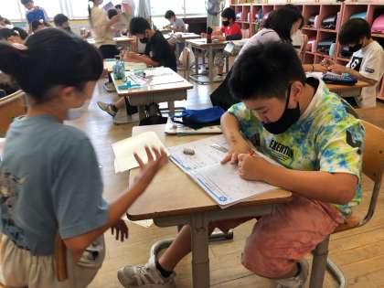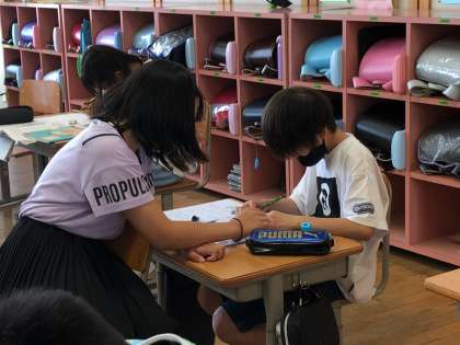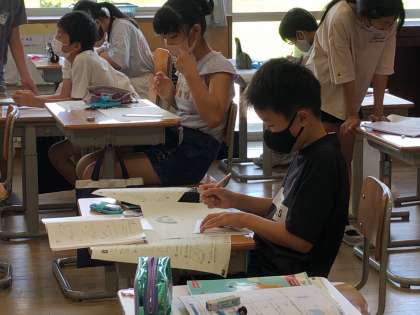 どうやったらかけるのかな?と友達と相談しながら学習に取り組んでいました。
