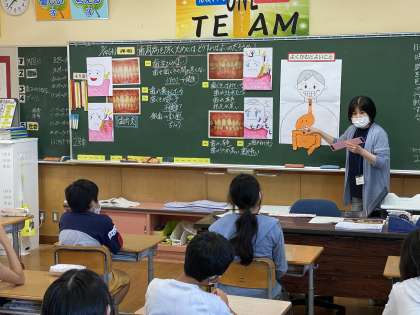 栄養教諭から「歯があることでどのようなよさがあるのか」お話をしてもらいました。