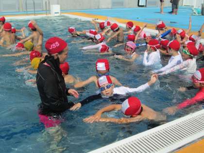 昨日・今日と教えていただいたことを踏まえて、最後には泳いでみました。この3日間で、最初は顔がつけられなかった子も鼻までつけられるようになったり、クロールの手を覚えたりしていました。ご指導ありがとうごさいました。
