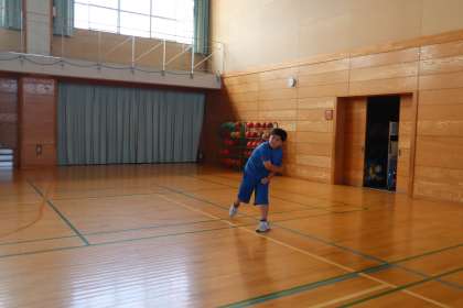 木曜日は、体育館でキャッチボールやなわとび、反復横跳びなど軽い運動をする日としています。