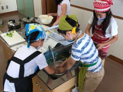 今日は、2回目の調理実習。ゆで野菜サラダに挑戦しました。