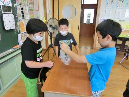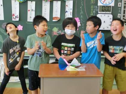 今日は、7月生まれのお友達の誕生日会です。この日のために、プレゼントや掲示物づくりをがんばっていました。体育館で、ドッジボール、ハンカチおとし、だるまさんがころんだをしました。「楽しかった!」、「またやりたい。」と、とてもうれしそうでした。