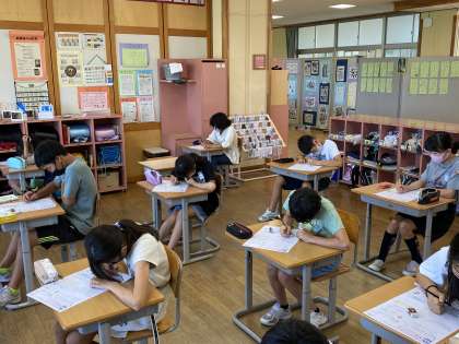 今学期最後の算数のテストをしました。
