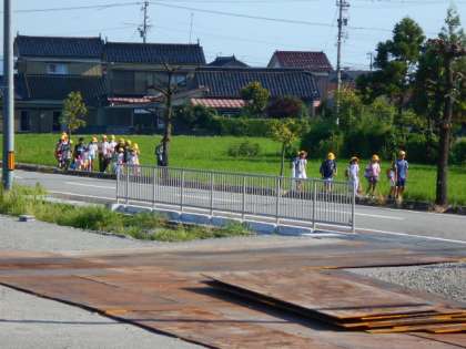 すっかり真夏の様相、朝から太陽がぎらぎらと照りつけています。今学期の登校はあと今日を含めて二日。今朝も子供たちは元気です。