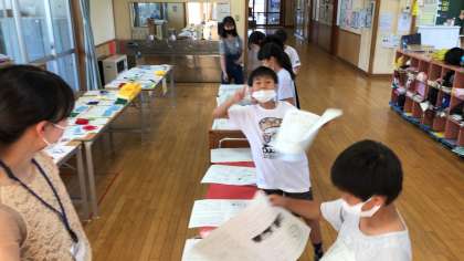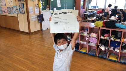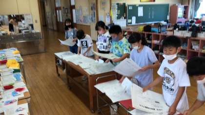 夏休みのプリント集を組んでいる2組の皆さん。やる気満々ですね!1組は明日準備しますよ。
