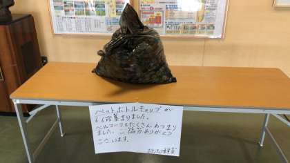 今日は、ペットボトル・エコキャップ回収の最終日。今日もたくさん集まりました。ご協力ありがとうございました。