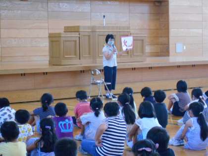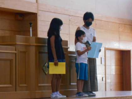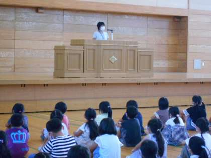 校長先生からは1学期の子供たちの成長に対する称賛があり、その後夏休みにがんばりたいことをお話しされました。