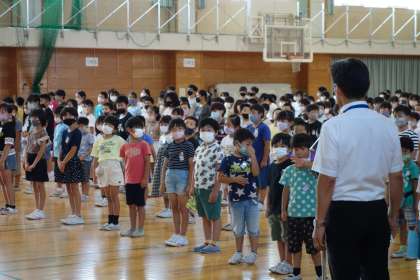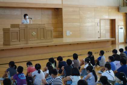 校長先生のお話では、大谷選手のエピソードをもとに「応援してもらえる人になろう」というメッセージをいただきました。夏休み中は、「地域の方や家族に進んで挨拶をすること」「交通安全などに気を付け、自分を大切にすること」を意識して、充実した夏休みにしましょう。