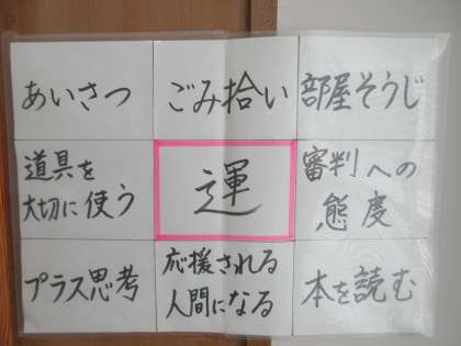 このシートは、今、校長室に貼ってあります。校長も毎日これを見ながら、「運」を引き寄せようと思っています。