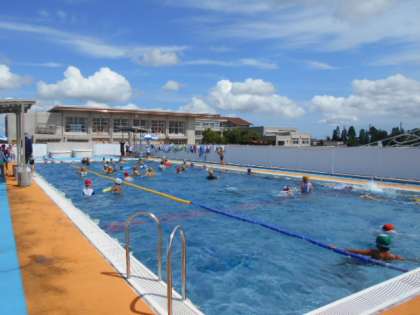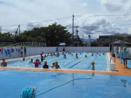 気持ちのよい夏らしいお天気に恵まれました。今日もプールではたくさんの子供たちが楽しんでいます。