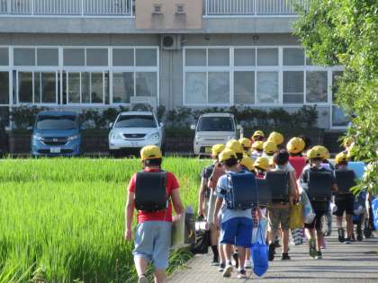 まだまだ暑い中、子供たちが元気に登校してきました。