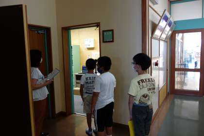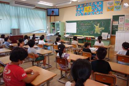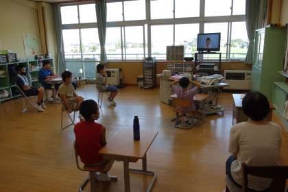 どの教室も、校長先生や児童代表の話を真剣に聞いていました。