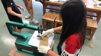 2学期の図画工作科の学習では、糸のこを使います。今日はお試しということで、段ボールを切ってみました。丸の形に切ったり、ギザギザに切ったりと、ノコギリではできないことを体験することができました。