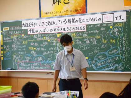 子供たちの言葉を黒板にまとめます。いっぱいになりました。