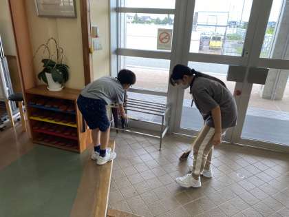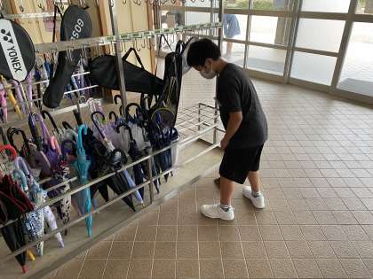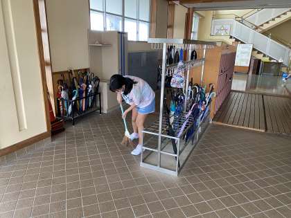 傘立ての下の蜘蛛の巣を丁寧に取っていました。