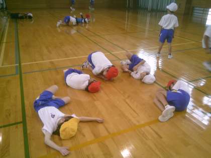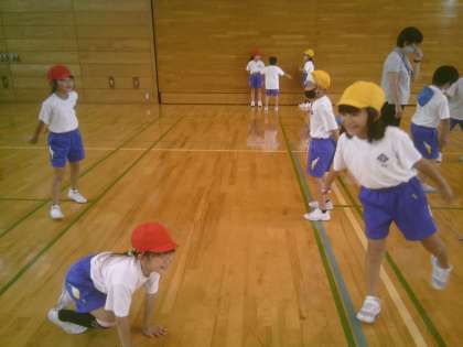友達と一緒にどうぶつになりきりました。今日は、「ねている様子」「えものをつかまえる様子」など、自分なりに動きを工夫していました。