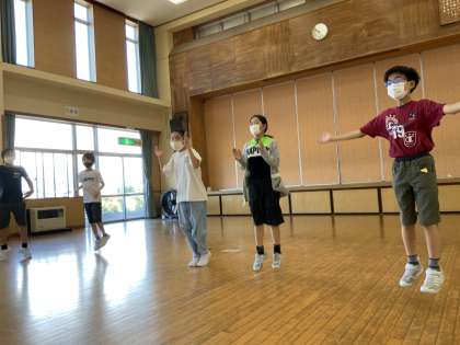 これは、運動委員会の「わくわくトレーニング」のリズムダンスづくりの様子です。