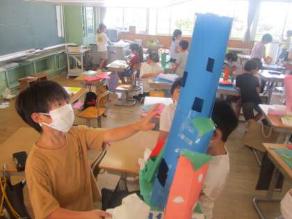 「まどからこんにちは」を完成させました。想像力が豊かな子供たちです。